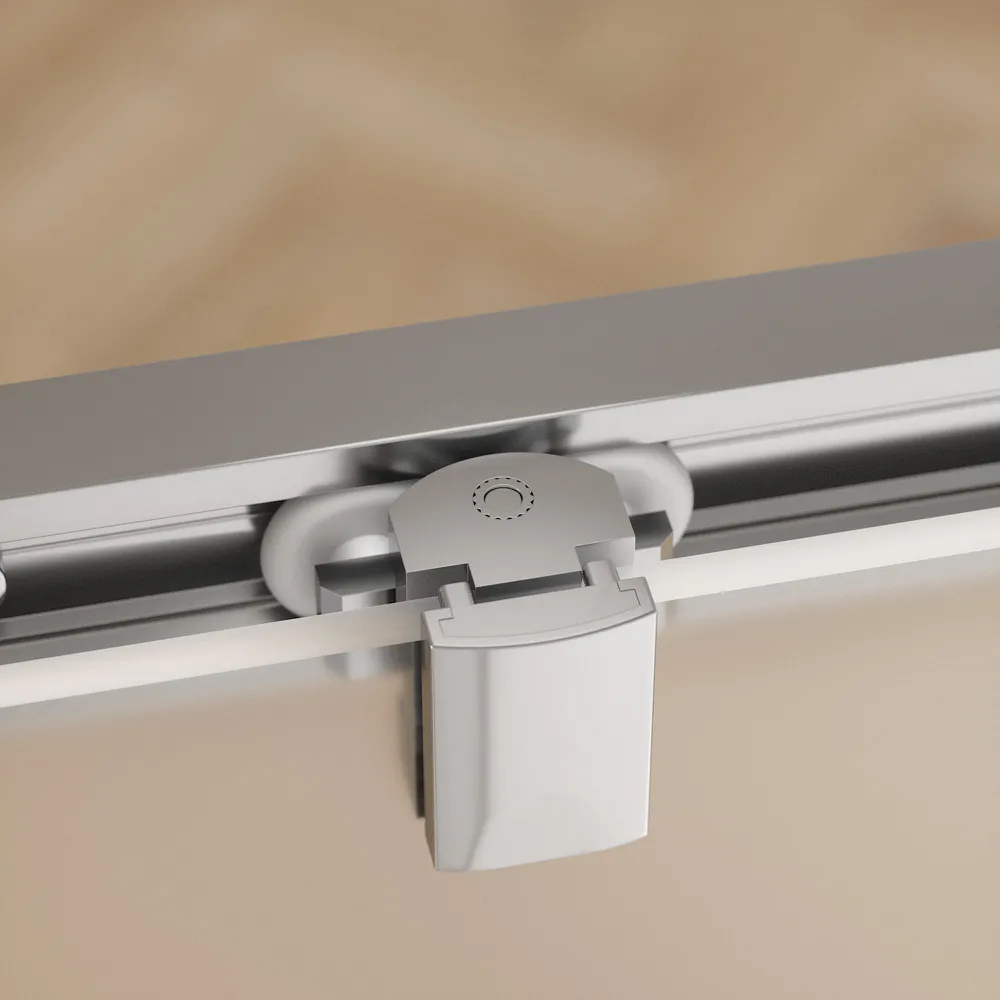 La porta scorrevole consente un’apertura fluida e silenziosa, ideale anche per bagni di dimensioni contenute. Il sistema di chiusura magnetica assicura una perfetta aderenza delle ante, evitando fuoriuscite d’acqua e garantendo la massima tenuta.
