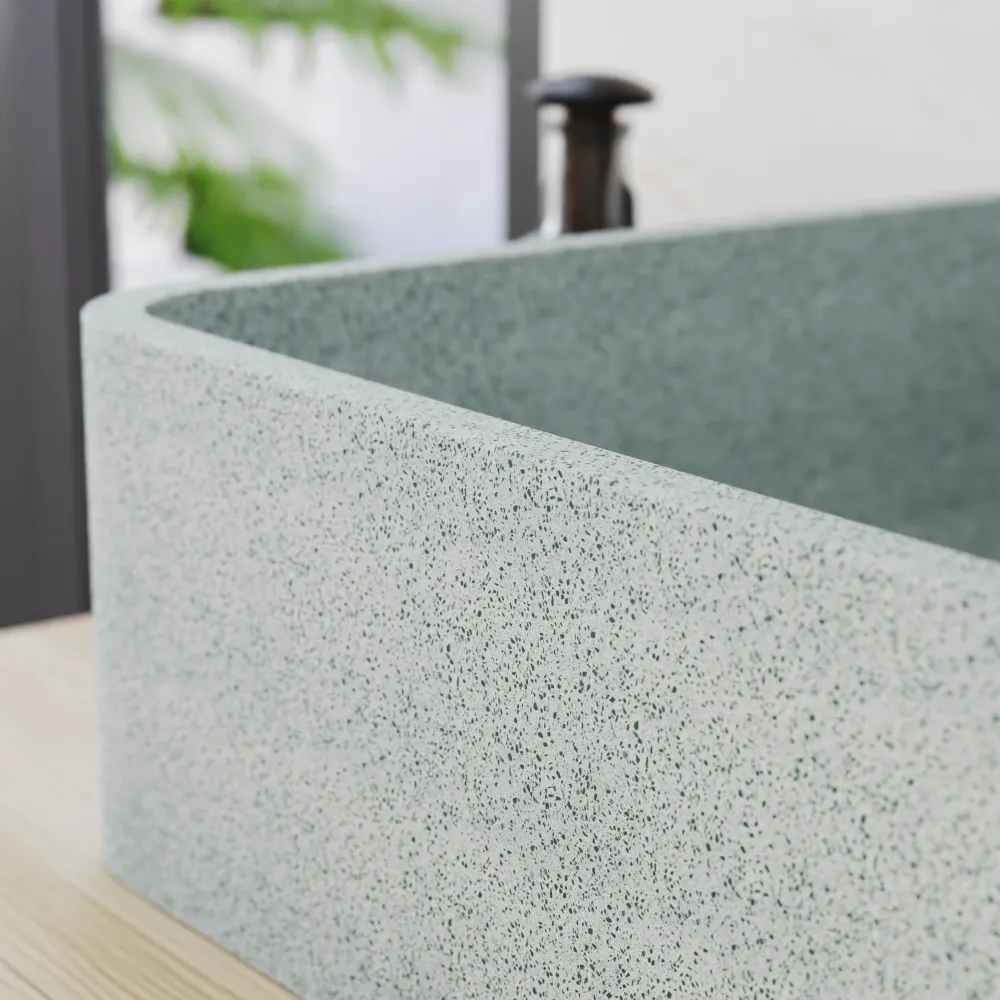 Il lavabo da appoggio Lesina in microcemento bianco con effetto terrazzo a graniglia fine è una scelta elegante e versatile, perfetta per ambienti bagno moderni e luminosi. La sua superficie opaca presenta delicate sfumature grigie e microinclusioni chiare che donano un look naturale, morbido e contemporaneo.