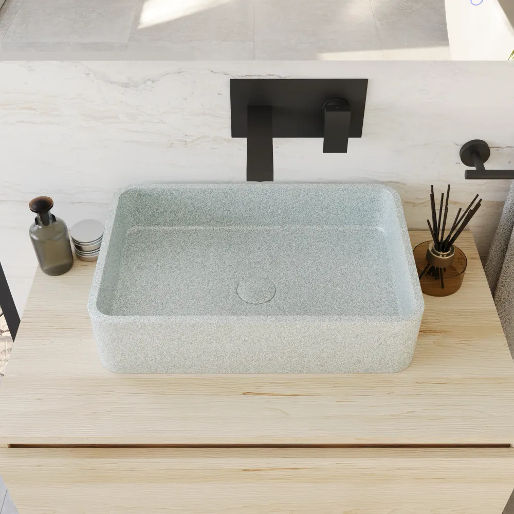 Con le sue dimensioni compatte (50×32,5×12 cm), il lavabo Lesina si adatta facilmente a piani e mobili di diverse tipologie, offrendo equilibrio tra funzionalità ed estetica.