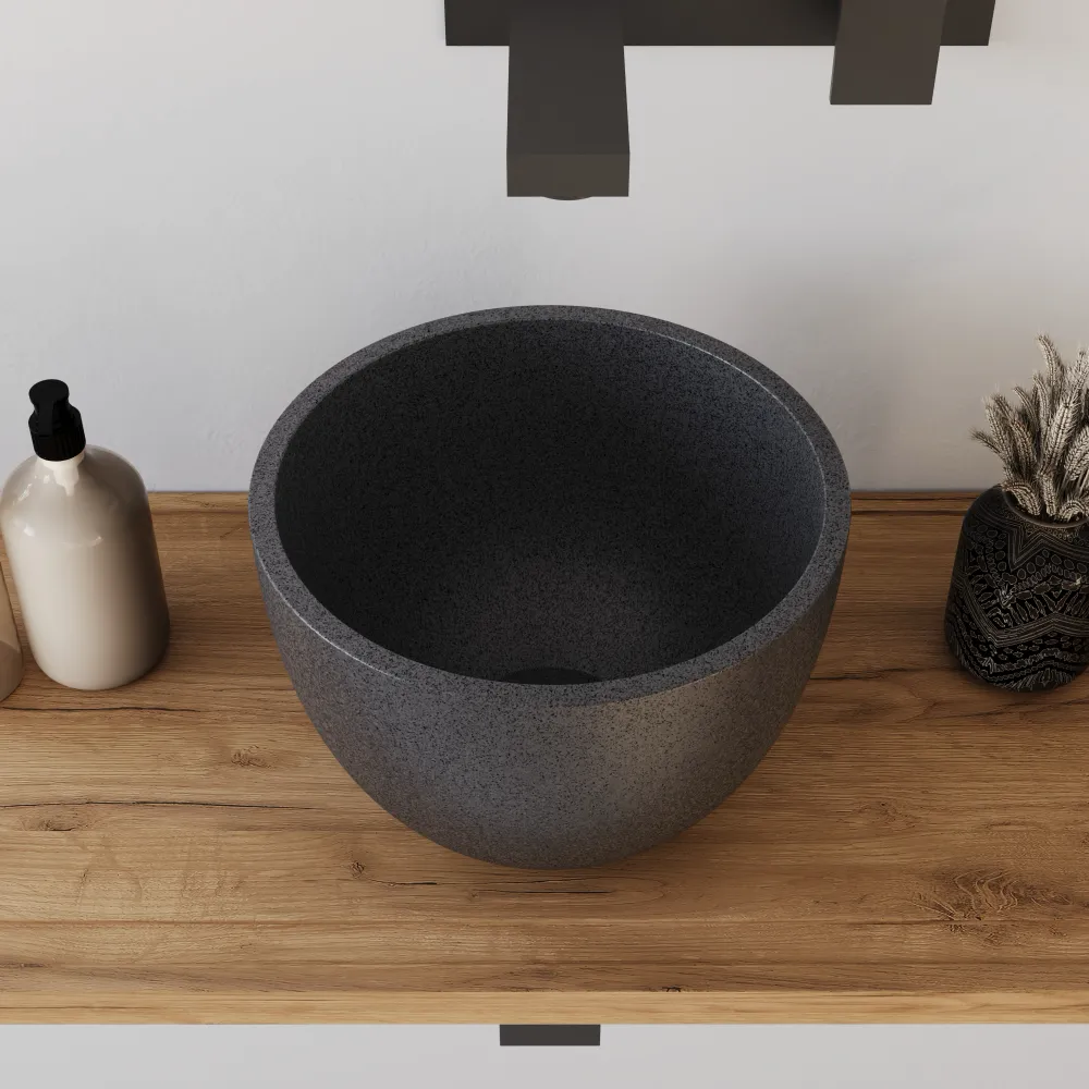 Lavabo da appoggio tondo in microcemento 22,5x15,5 cm nero | Sevan