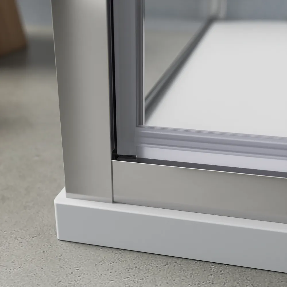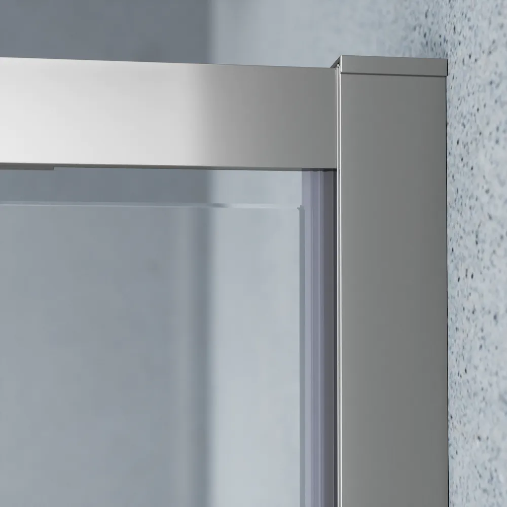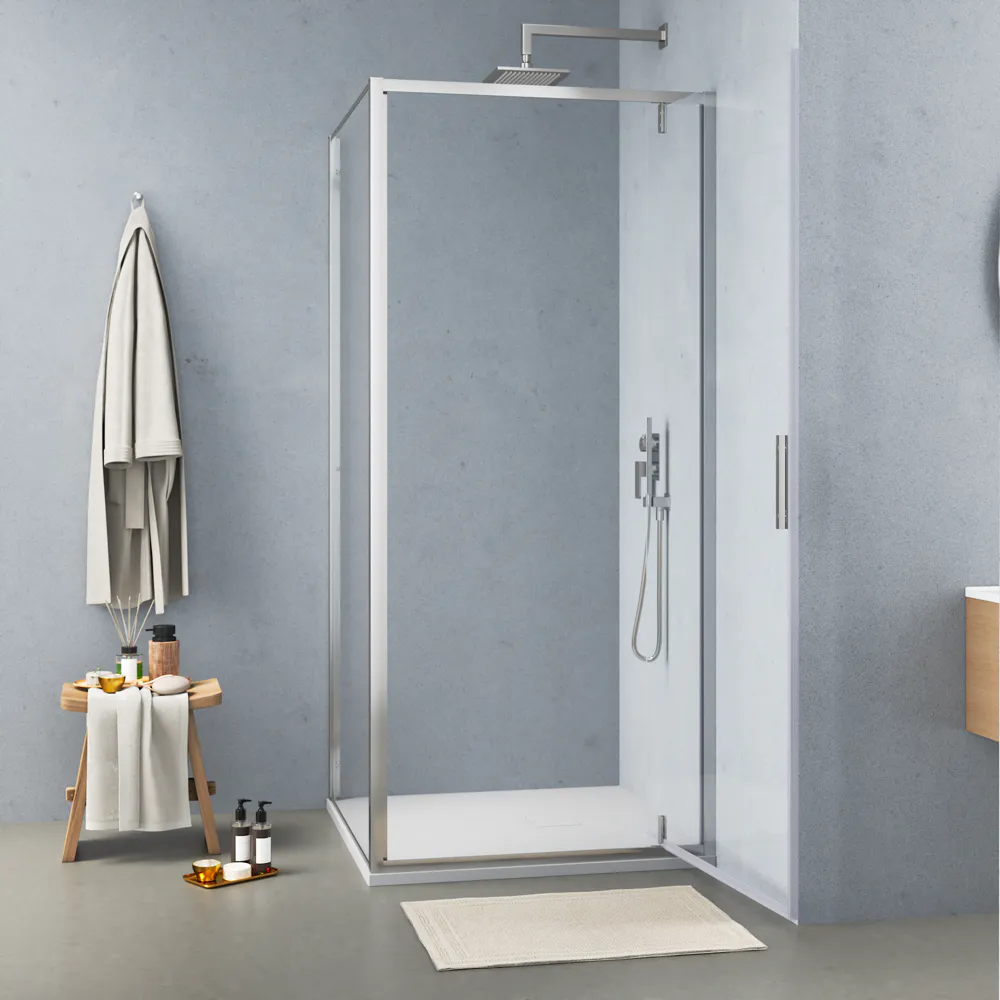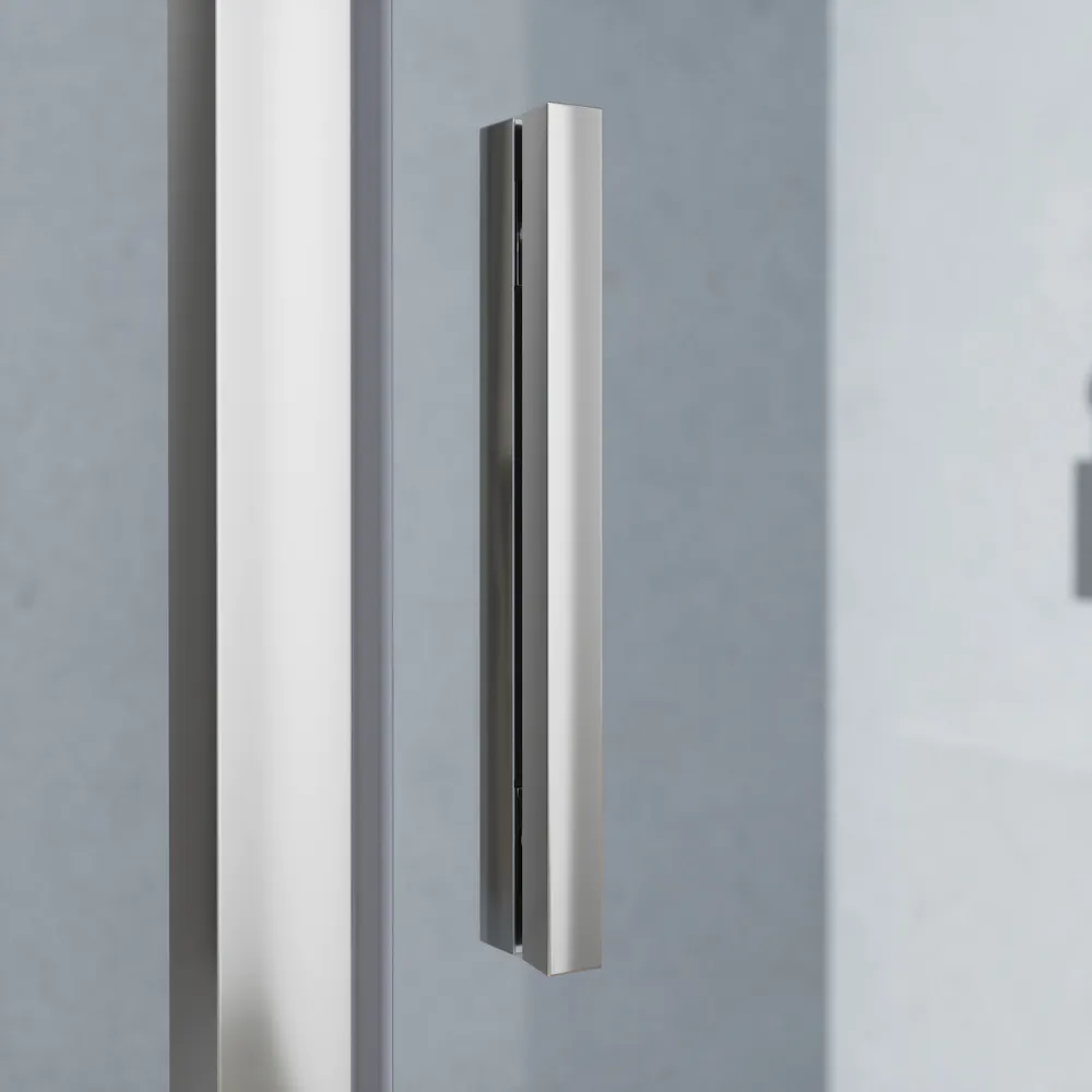 Il box è composto da un’anta a battente da 90 cm e una parete fissa da 70 cm che insieme creano una cabina doccia quadrata dalle dimensioni compatte ma confortevoli. I profili in alluminio cromato di alta qualità offrono una struttura stabile resistente alla corrosione e facile da pulire.