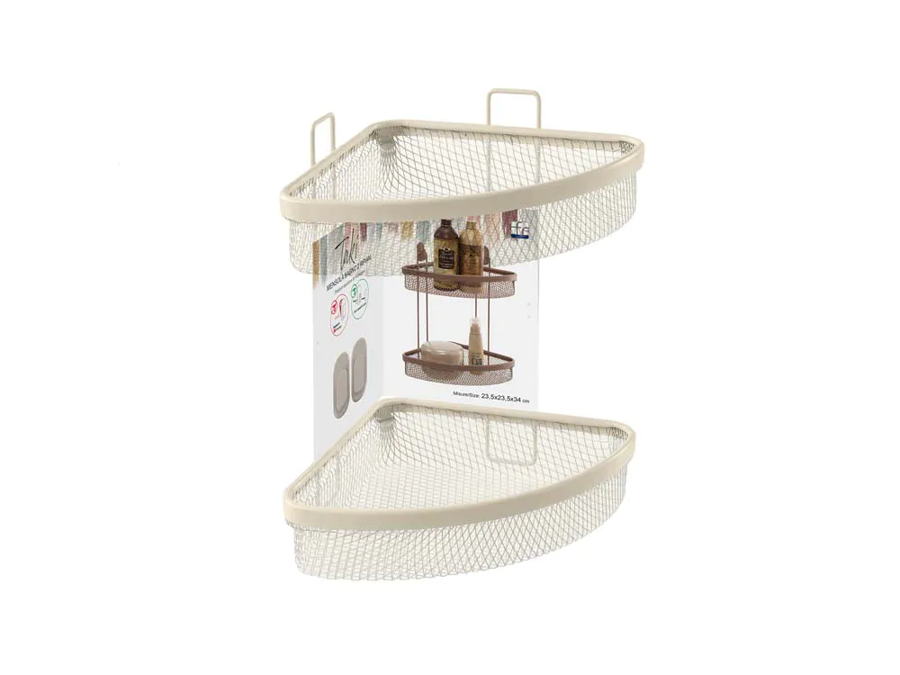 Realizzata in acciaio robusto, questa soluzione angolare è ideale per sfruttare ogni centimetro disponibile. Dispone di due ampi ripiani sovrapposti, ognuno dotato di un bordo con riparo (sponda anticaduta), fondamentale per mantenere stabili anche i flaconi di shampoo più alti e pesanti.