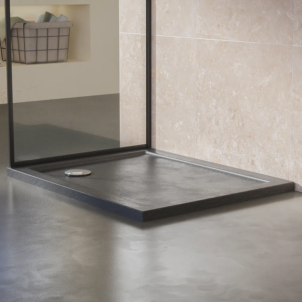 Piatto doccia 70x90 effetto pietra nero in acrilico altezza slim | Petra