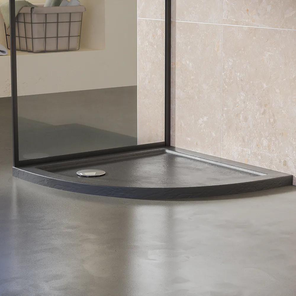 Piatto doccia 80x80 semicircolare bordato effetto pietra nero in acrilico altezza slim | Petra
