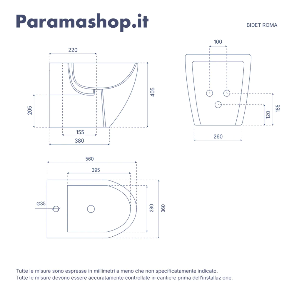La curva tecnica ed il sifone per il bidet non sono inclusi ma possono essere acquistati separatamente sempre sul nostro sito. Inoltre, per un'installazione completa, raccomandiamo l'acquisto della piletta di scarico click-clack necessaria per il bidet.