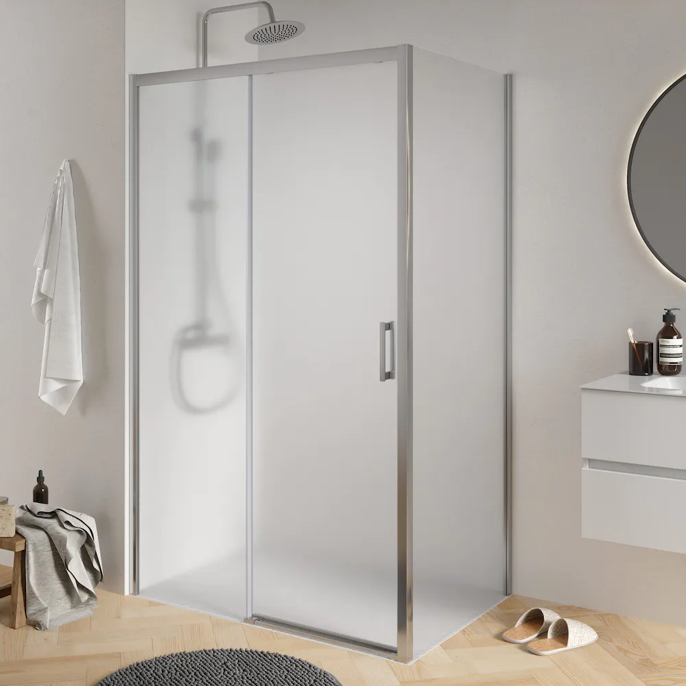 Box doccia angolare 90x150 cm profili cromati apertura scorrevole 150cm e parete fissa 90cm vetro 6mm opaco h190 | Cuba