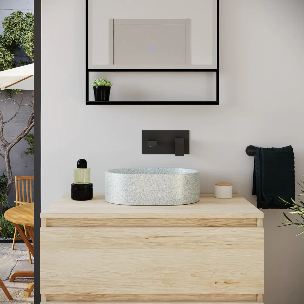 Lavabo da appoggio ovale in microcemento 40x28x12 cm beige | Bolsena