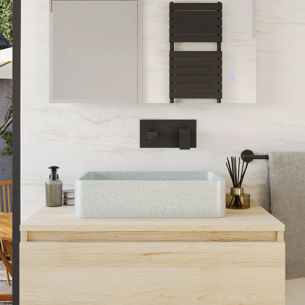 Lavabo da appoggio rettangolare in microcemento 50x32,5x12 cm beige | Lesina