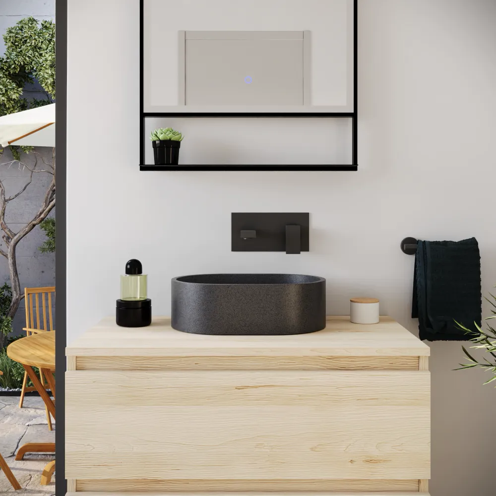 Lavabo da appoggio ovale in microcemento 40x28x12 cm nero | Bolsena